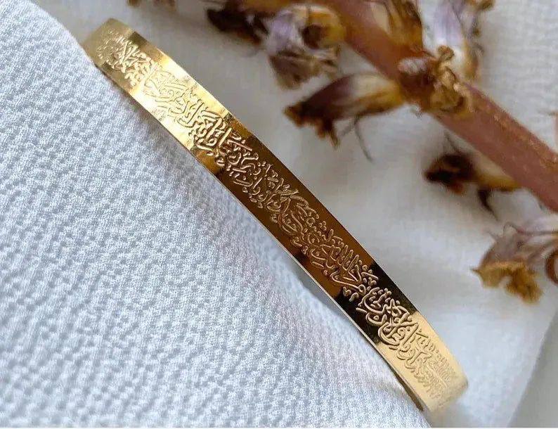 Premium 316L stainless steel bracelet engraved with Ayat Al-Kursi. Elegant, durable, and safe for sensitive skin.